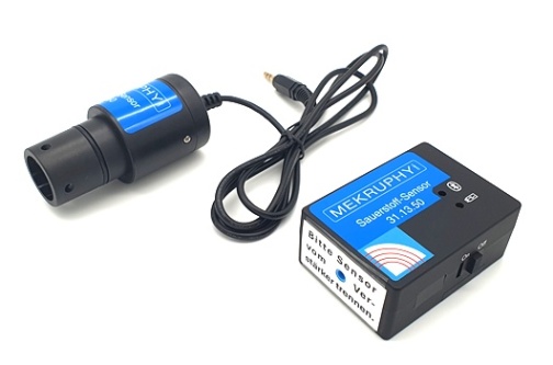 Der Sauerstoff-Sensor misst den Sauerstoffgehalt in Gasen von 0 % bis 27 % O2 bei einer Auflösung von 0,01 % O2 und einer Genauigkeit von 1 %. Er darf nicht für Flüssigkeiten eingesetzt werden. Der Sensor ist bei Auslieferung kalibriert und braucht nicht nachkalibriert zu werden. Sein Gehäuse ist dem Hals einer Gasprobenflasche angepasst, die im Lieferumfang des Experimentiersatzes BIOLOGIE 6 enthalten ist.
