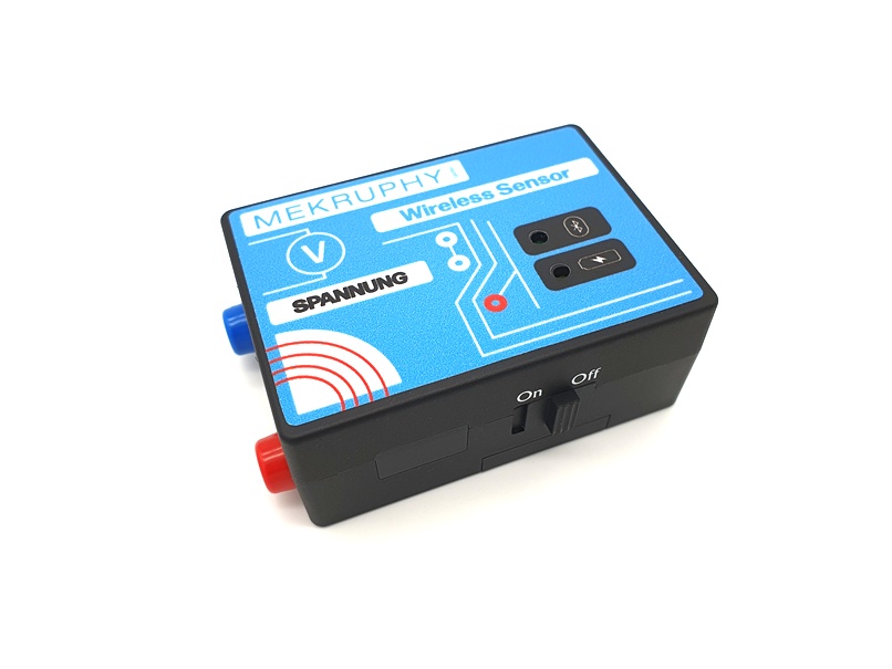 Der Spannungs-Sensor hat drei Messbereiche ± 1 V, ± 6 V und ± 25 V bei einer Auflösung von 0,0006 V bzw. 0,004 V bzw. 0,013 V und einer Genauigkeit von 1 %. Er ist sowohl für Wechsel- als auch für Gleichspannung geeignet. Zum Anschluss sind zwei gewöhnliche Experimentierkabel mit 4 mm Steckern vorgesehen.