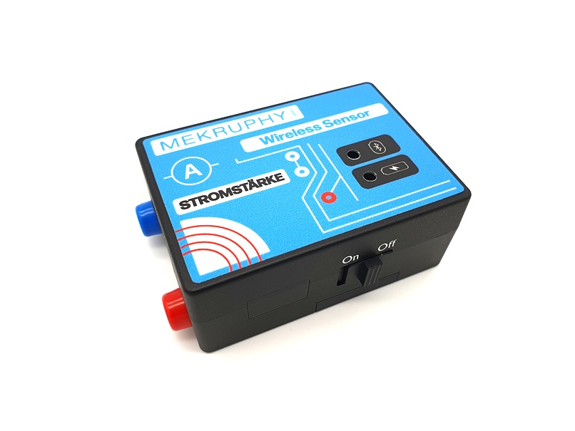 Der Stromstärke-Sensor hat die Messbereiche ±0,01 A, ±0,3 A und ±2,5 A bei einer Auflösung von 0,016 mA bzw. 0,16 mA bzw. 1,3 mA und einer Genauigkeit von 1 %. und ist für Wechsel- und Gleichstrom geeignet. Die Anschlüsse erfolgen wie beim Spannungs-Sensor über zwei Experimentierkabel mit 4 mm Steckern.